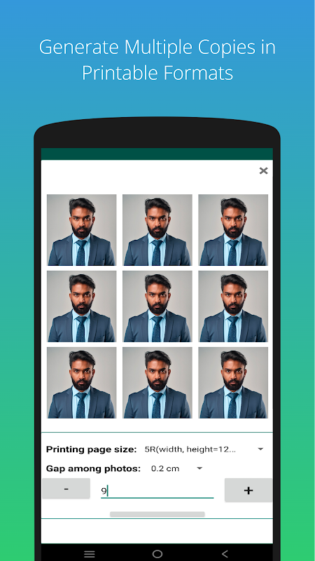 L'interfaccia intuitiva dell'app semplifica la regolazione delle foto nelle dimensioni corrette, l'applicazione delle modifiche necessarie e l'anteprima del risultato finale prima del salvataggio. Di' addio all'inconveniente di visitare uno studio fotografico o di dover lottare con complessi software di editing: Passport Size Photo Maker ti porta la creazione di foto di qualità professionale a portata di mano.