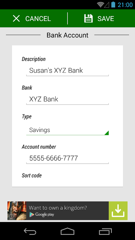 Password Manager allows you to export your data to the SD card so you can keep a copy handy. Furthermore, this exported data can be password protected to prevent unauthorized access to your data.