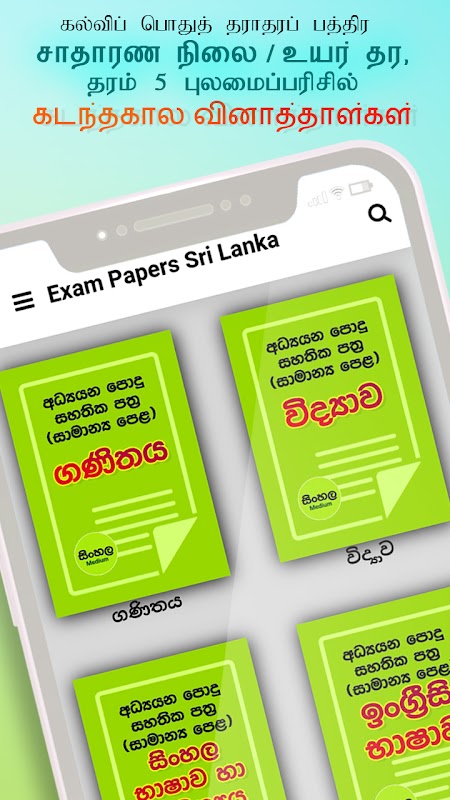 අධ්යන පොදු සහතික පත්ර සමාන්ය පෙළ, උසස් පෙළ සහ 5 ශ්රේණිය ශිෂ්යත්ව පසුගිය හා ආදර්ශ විභාග ප්රශ්න පත්ර මෙම යෙදුම තුළින් ලබා ගත හැක. සියළුම විෂයන් වලට අදාල පසුගිය ප්රශ්න පතු අන්තර් ගත වේ. සිංහල தமிழ் inglese මාධ්යයන්ගෙන් ලබා ගත හැක.