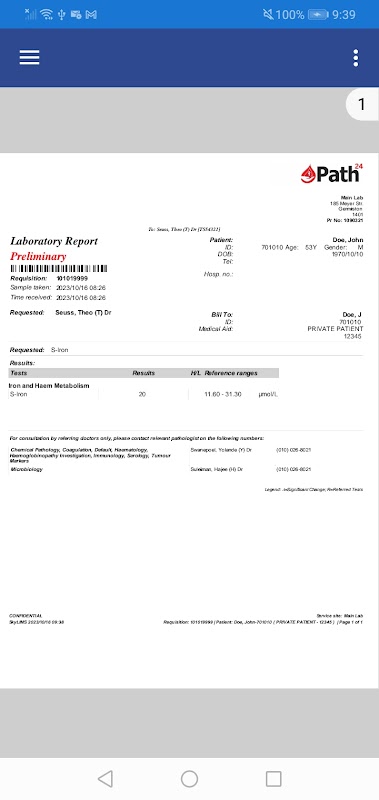 Path24 consente ai medici di accedere rapidamente ai risultati dei test più recenti del paziente.