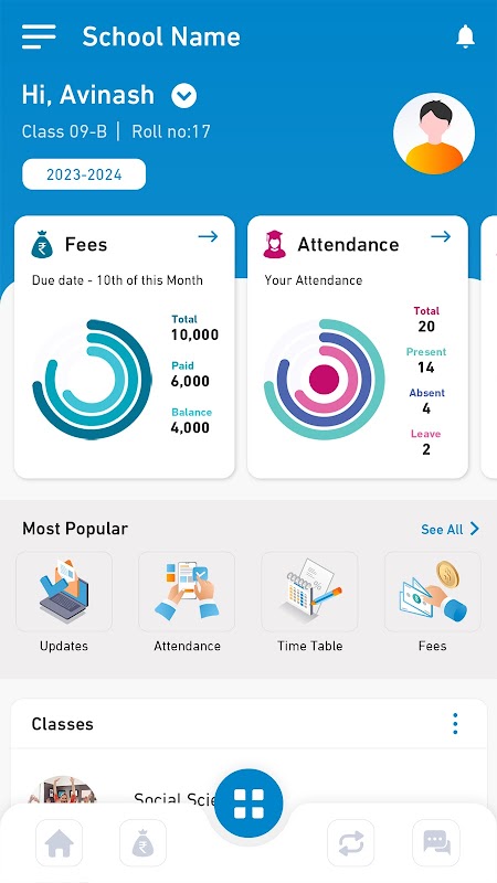 "Tariffe" questo modulo fornirà ai genitori un promemoria automatico un giorno prima della presentazione delle tariffe. I genitori possono anche visualizzare tutta la cronologia delle transazioni tramite questa app.