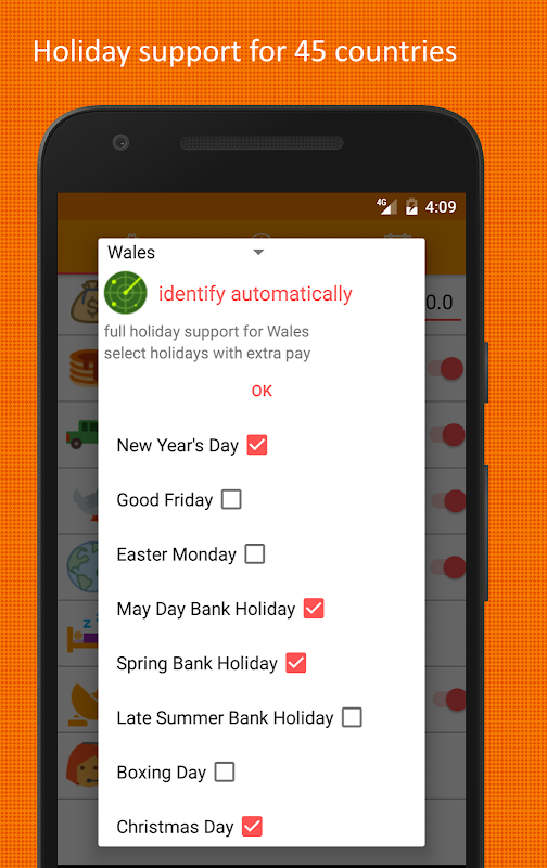 Semplice da configurare e utilizzare, con supporto per le festività per 45 paesi, il Paycheck Tracker tiene traccia delle tue ore di lavoro.