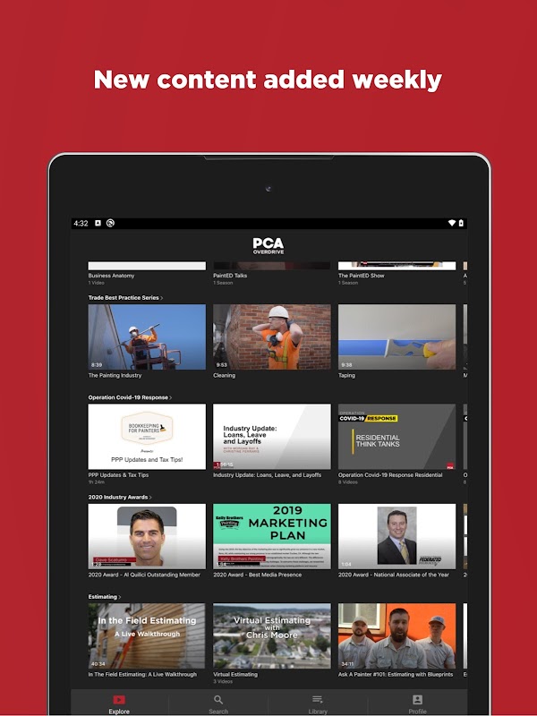 Abbiamo una libreria in streaming di podcast, serie educative, video e webinar, tutti orientati all'appaltatore della pittura. Con l'app mobile, ottieni PCA Overdrive ovunque ti serva: ufficio, casa o da qualche parte nel mezzo.