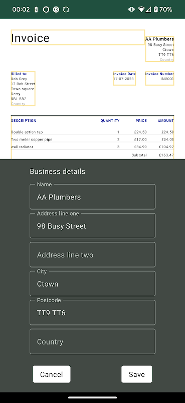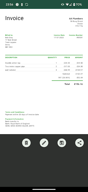 - Salva indirizzi, clienti, articoli/servizi e altri dettagli nel database dell'app per utilizzarli in altre nuove fatture