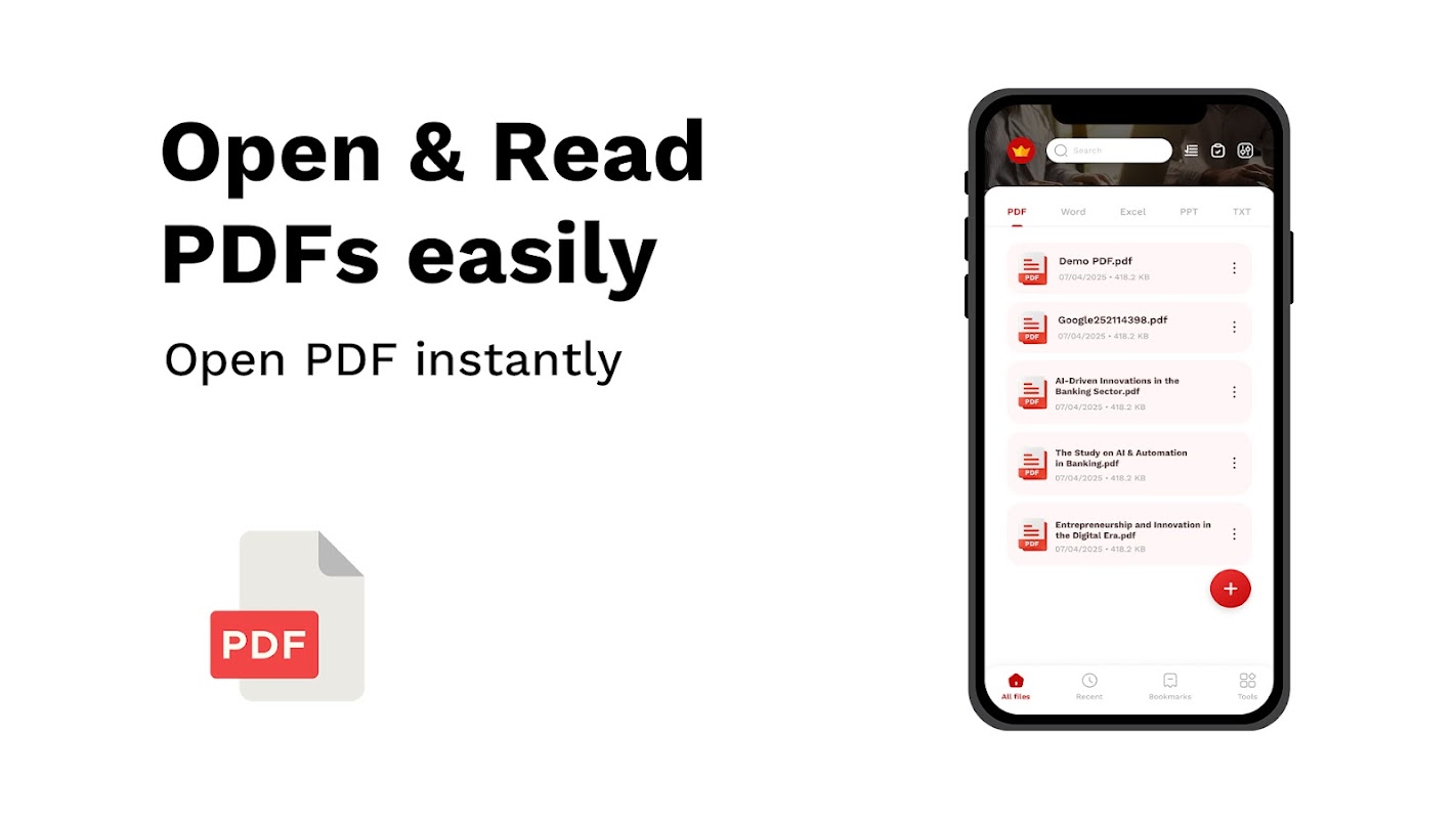 Apri e leggi file PDF senza problemi, anche quelli di grandi dimensioni. Ingrandisci, scorri, cerca e passa da una pagina all'altra con un'interfaccia reattiva del visualizzatore PDF. Con il supporto per segnalibri, accesso recente ai file e visualizzazione offline, questo lettore PDF è progettato per rendere la tua esperienza di fruizione dei documenti su dispositivi mobili semplice e fluida.