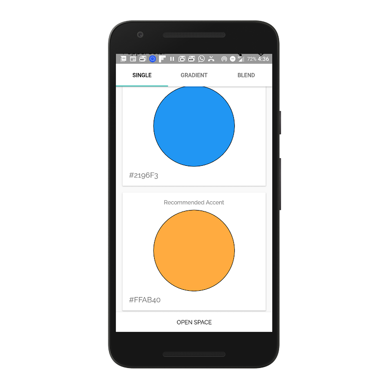 PepperColor solves a large amount of this tedious work by bringing the selection as an interface with live preview, easy creating of gradients and blends of colors, which can easily be implemented for android developers (java or kotlin).