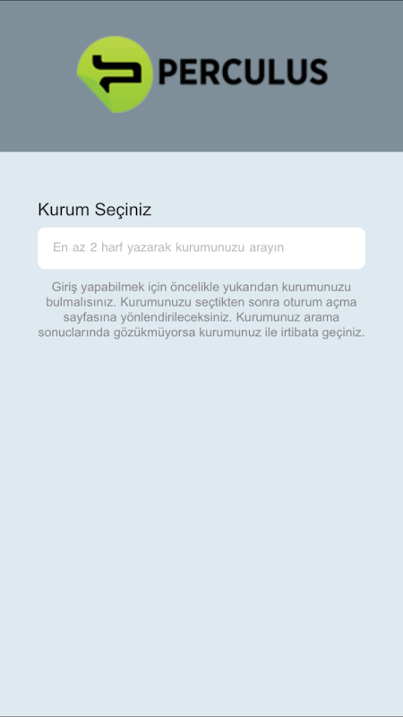 Not: Perculus+ kullanıcıları sadece kurumunuzun Perculus+ web sitesi üzerinden uygulamaya giriş yapabilirsiniz.