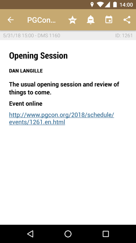 ✓ Read detailed descriptions (speaker names, start time, room name, links, ...) of events