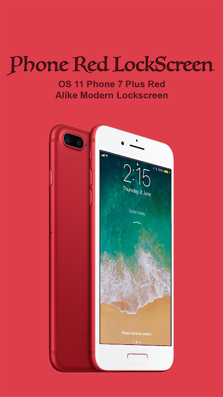 Tired of old creepy android lock screen, try our new iOS Lock screen on Android? Get iOS11 iLocker and experience new iPhone 7 Red Lock Screen with notifications, keypad lock screen, and more great features of iPhone 7 Red Theme.