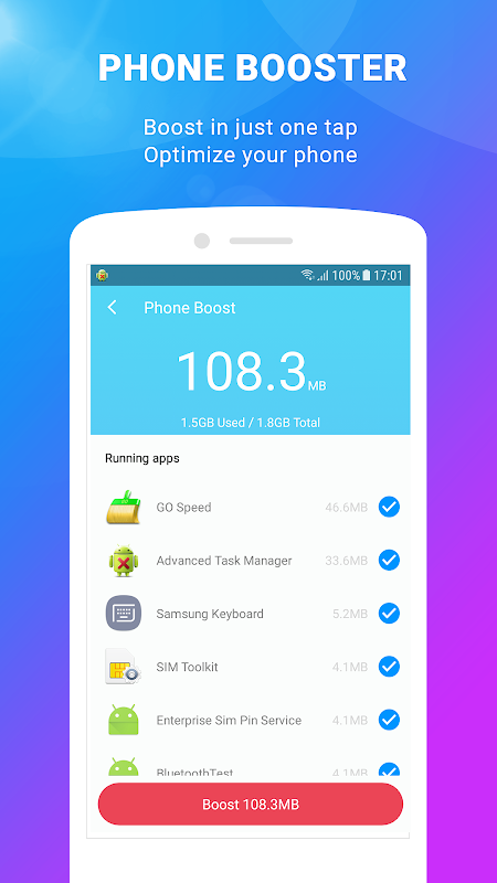 Utilizzando la speciale tecnologia di pulizia di Cleaner & Booster, la modalità boost del telefono Android super clean può ripulire il processo in background, gestire le applicazioni e disattivare le applicazioni di avvio automatico per liberare spazio di memoria. .