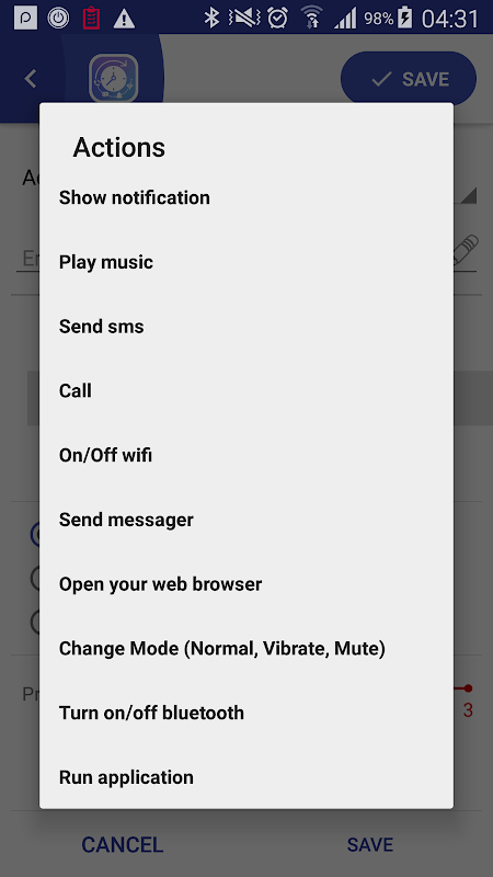 Timer per chiamare, inviare messaggi, riprodurre musica, il cambiamento wifi e modalità telefono, eseguire qualsiasi applicazione