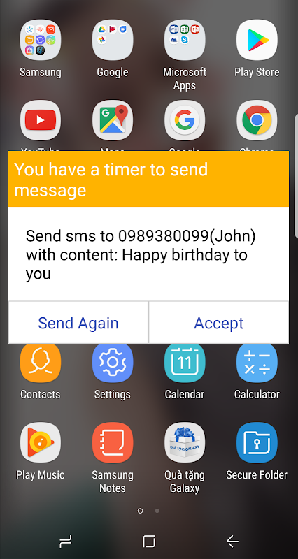 - Timer send a message on messager app.
