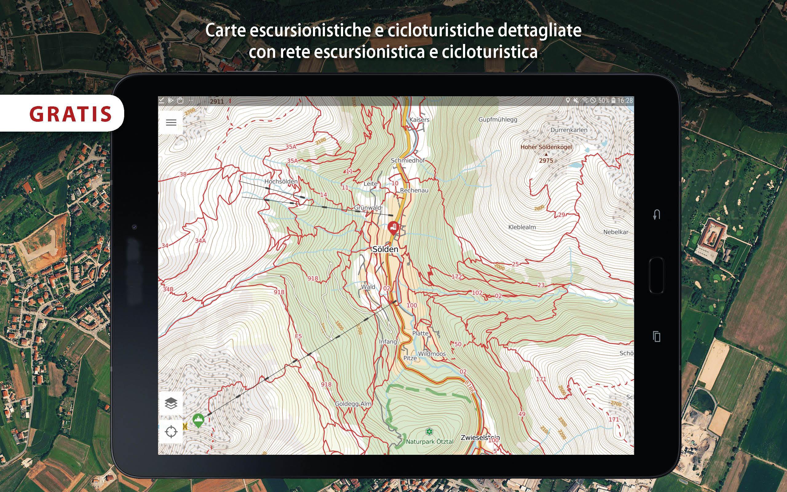 Applicazione con le mappe escursionistiche/ciclistiche di tutta l’Europa
