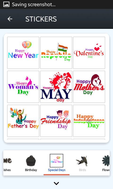 Photo art(2017) app provide stickers such as wishes, birthday, special days, birds, flowers,love, cartoon,