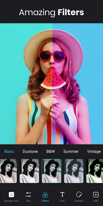 Ricorda, questa è un'app che non solo ti permetterà di aggiungere filtri alla tua foto. È un'app che consente la rimozione dello sfondo e consente all'utente di cancellare eventuali imperfezioni, ritagliare oggetti, rimuovere colori, persone o filigrana dalla tua foto preferita con pochi tocchi.🔆