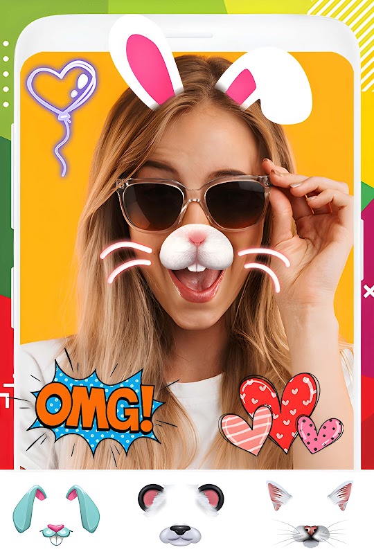 Questa dolce app per filtri selfie per fotocamera è un ottimo strumento di modifica, puoi scattare fantastiche foto del profilo per i social media, tutti i tuoi amici saranno molto felici di vederle. Usa fantastici adesivi per scattare foto con loro e realizzare fantastici selfie, puoi scattare nuove foto insieme ai tuoi amici.