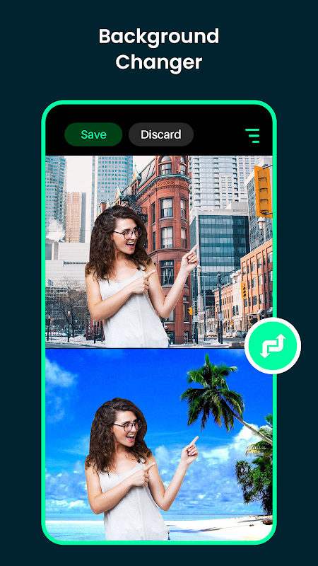 Sostituisci lo sfondo: ritaglia automaticamente l'immagine con lo strumento di selezione automatica AI e incollala su un'altra immagine o sfondi. Seleziona lo sfondo che desideri dalla galleria e cambia lo sfondo della foto.
