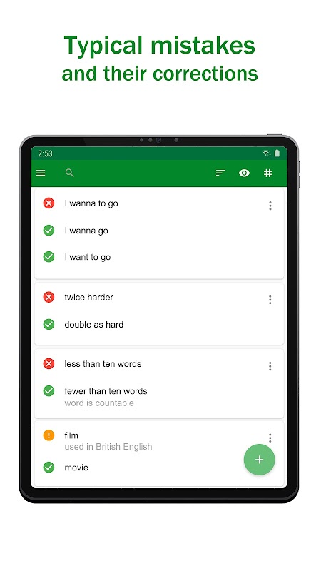 - annotare non solo la forma corretta di una frase ma anche una possibile forma errata e una forma poco utilizzata. Questo renderà più facile imparare le frasi e non commettere errori.