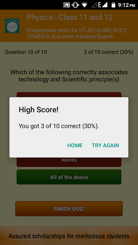Bored of reading different textbooks for hours and hours for engineering and medical entrance exams ? Want to make your studying in par with entrance exams ? Want a simple, portable method of study ? Then look no further than Physics Quiz App.
