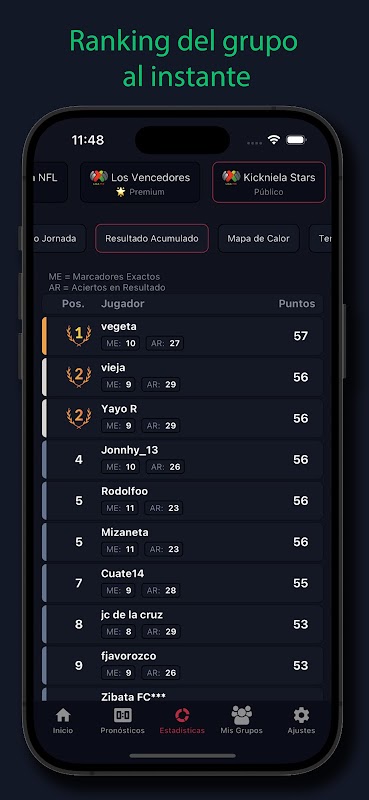 Kickniela ti permette di organizzare pronostici di calcio con amici, familiari o colleghi. Crea gruppi privati, fai i tuoi pronostici per ogni giornata di partita e competi per il primo posto con una classifica chiara e divertente.