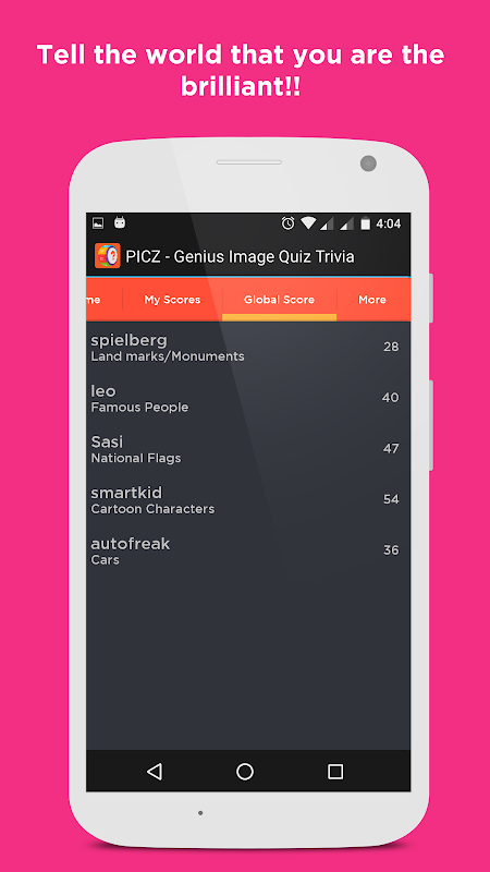Enjoy hours of fun with identifying lots of images. Share your score to the world and say you are a genius!!