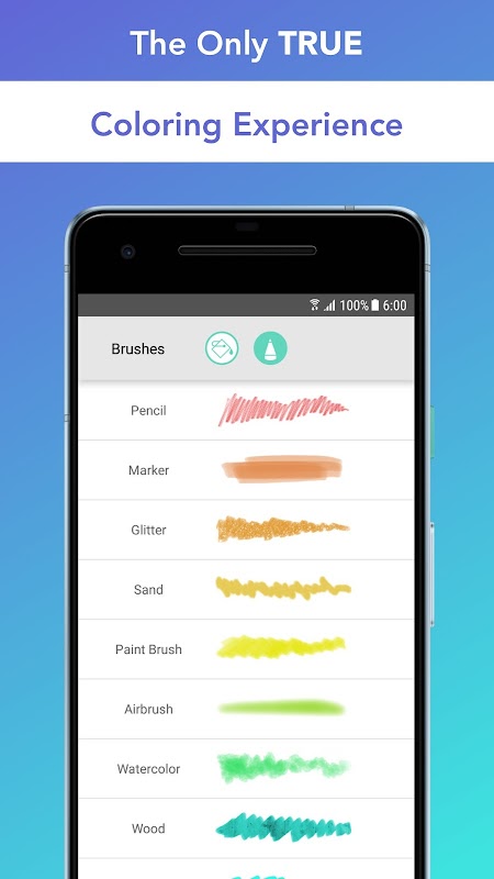 * Pigment is the only coloring book app that simulates pencil, markers, and paintbrush strokes for a realistic coloring experience