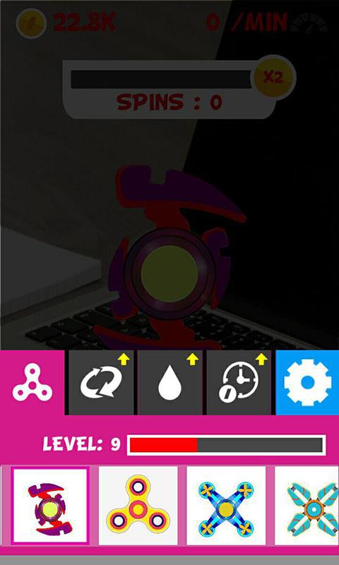In this android game just rotate the spinner in the apps and will spin until the specified time. then collect his points to raise the level and change the other spinner models.