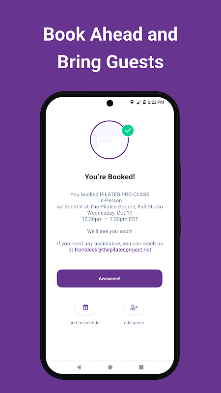 Scarica la nostra app e accedi al nostro programma. Prenota sessioni private e semi private e lezioni in piccoli gruppi. Puoi anche acquistare pacchetti, gestire il tuo account, visualizzare promozioni ed eventi e ricevere aggiornamenti sullo studio.