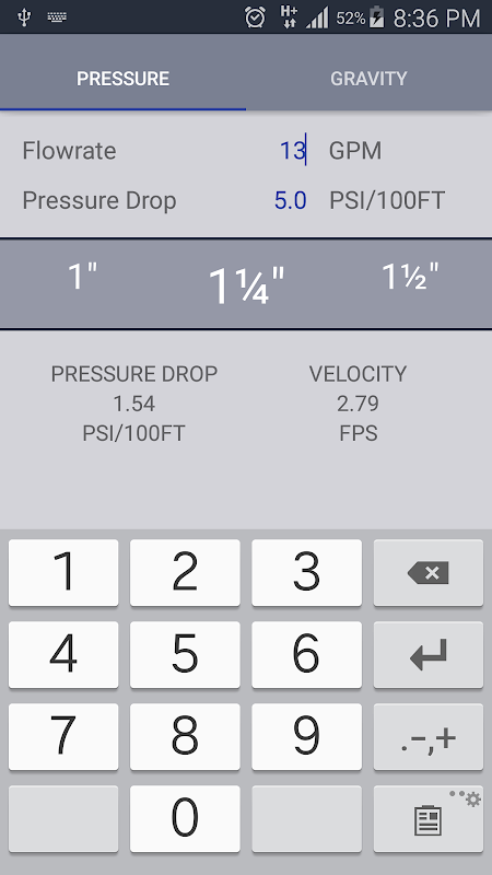 strumento di dimensionamento del tubo per entrambi i sistemi di pressione e di gravità.