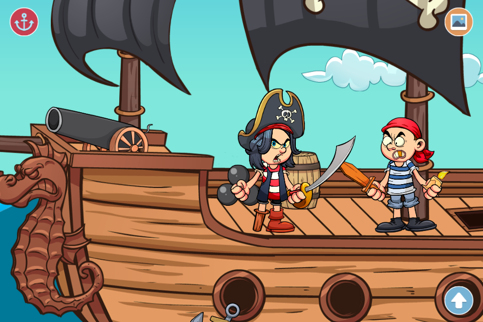 - Five locations to explore: the pirate ship, the hold, the captain's cabin, Cannibals Island and Treasure Island. In addition, each location has hidden places like the bay, the marsh, the volcano or the secret cave.