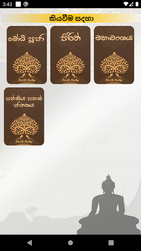 Questa app è progettata per ascoltare e leggere Pirith e Bodhi Pooja.