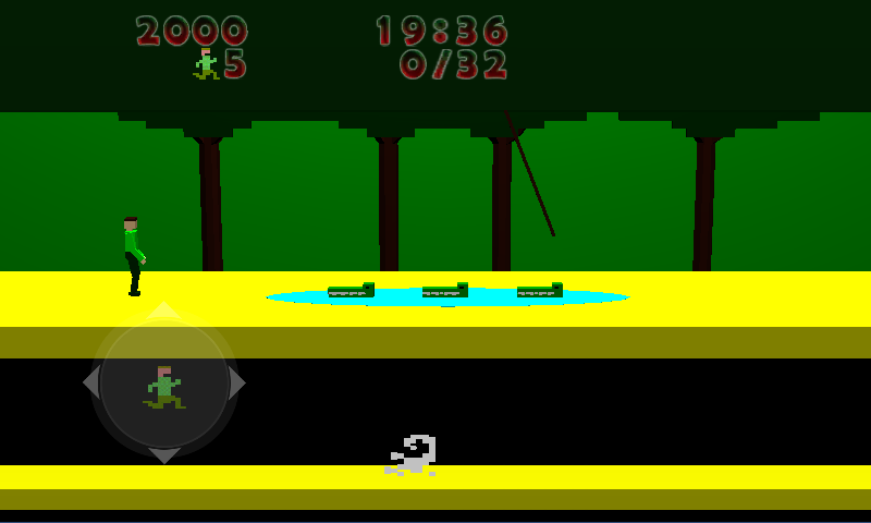 Ci sono due modi per giocare a Pitfall: la modalità time-lapse dove hai 60 minuti per trovare i 32 tesori nella foresta, o la modalità ATARI dove sulla console hai solo 20 minuti per trovare i tesori. In questo ho scelto 25 minuti per lo schermo in modalità Wide-Screen, perché il tempo per attraversare lo schermo è un po' più lungo e la somma di ogni schermata dà un tempo maggiore, e se riesci a raccogliere tutti gli oggetti in questa modalità ATARI, avrai una fine diversa.!!