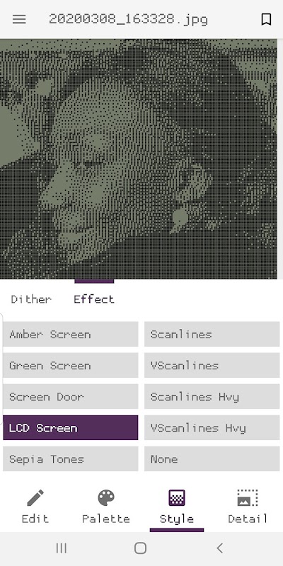 Usando Pixcha, puoi convertire le tue foto in quel look pixel art retrò di decenni fa. Ricolora le immagini utilizzando i classici colori di sistema degli anni '80 e '90. Ricrea quei look monocromatici a colori, verdi o ambra. Guarda come sarebbero le tue immagini su un vecchio schermo LCD. Ricrea l'aspetto del CRT a colori con le linee di scansione.