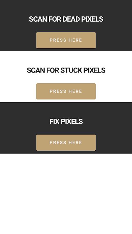 This app detects any stuck pixel or Dead pixel and then Fixes those pixels.