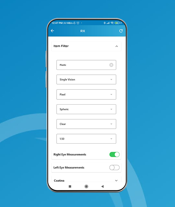 PIXEL Mobile app used to place orders easier for the optical community, to develop the market, and introduce products online, with all the needed technical information and lens requirements through the same cart!