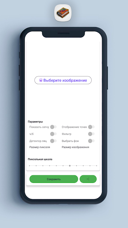 Pixelate it - è uno strumento utile per trasformare le tue immagini in pixel art. Seleziona un'immagine dal tuo dispositivo, regola le dimensioni dei blocchi, usa la griglia, i filtri a punti e fai clic sul pulsante "Salva" o "Condividi".
