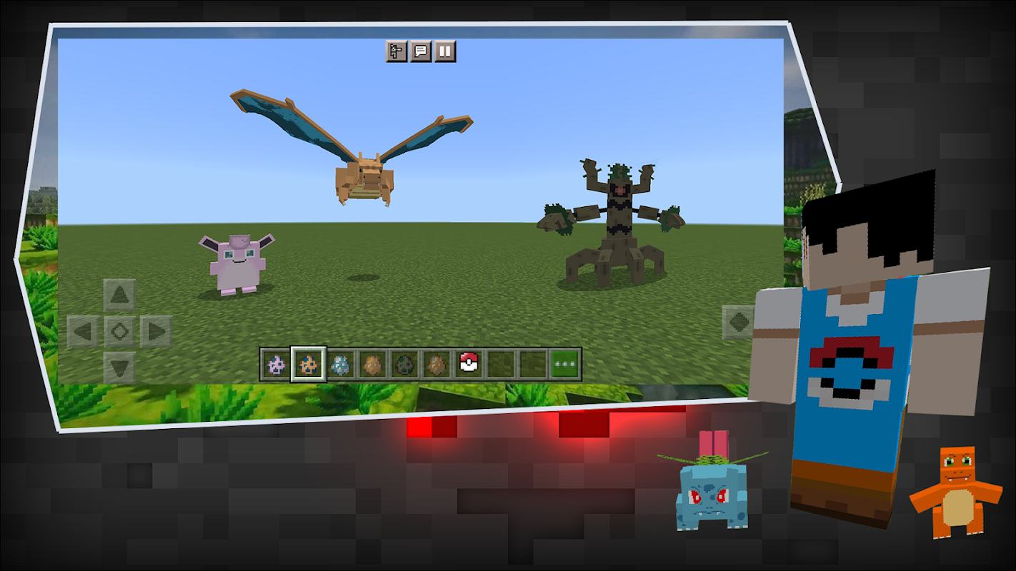 La mod di gioco Pokemon per MCPE contiene un pacchetto gratuito di componenti aggiuntivi per Minecraft PE (Bedrock Edition) che aggiunge Pokemon Pixelmon al gioco.