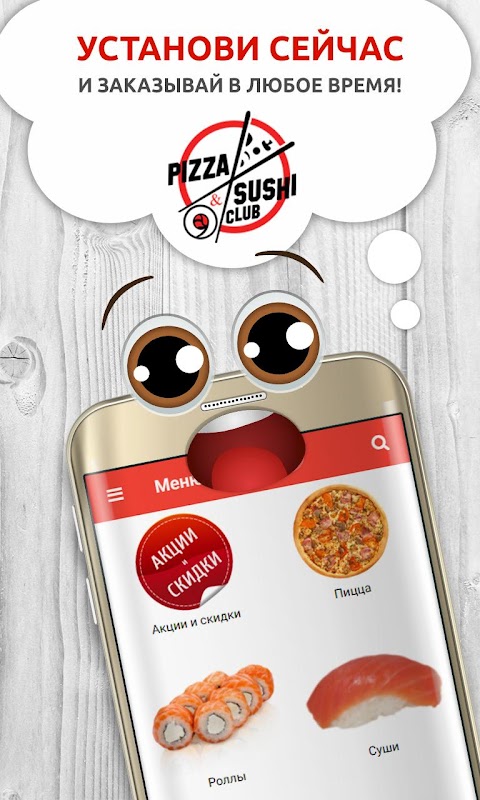 PizzaSushiClub, доставка пиццы, суши, роллов, wok 1.1.2130