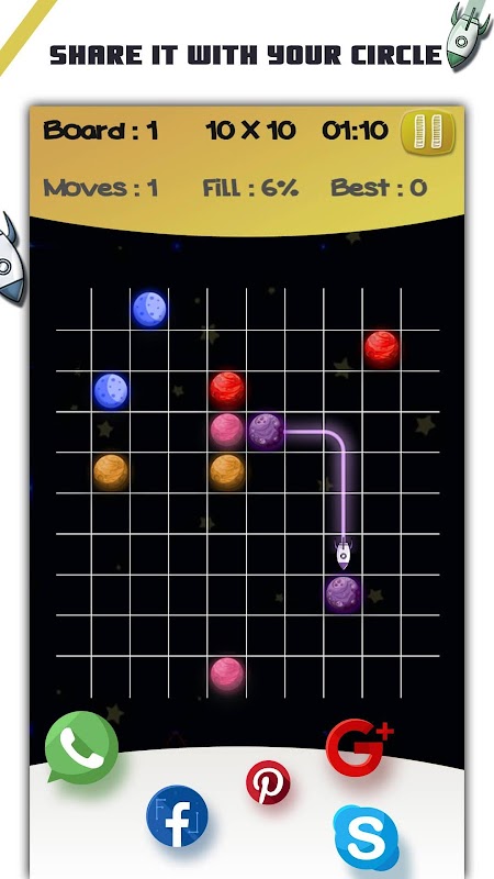 The principle is simple; just connect the Planet with the same color or Type to complete the level and move on to another.