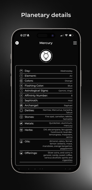 Planetary Magick è un'interfaccia intuitiva che ti consente di accedere a centinaia di incantesimi magici che puoi eseguire da qualsiasi parte del mondo. Innanzitutto, seleziona un'intenzione magica. Questa scelta decide il pianeta con cui lavori e i colori, le erbe e gli oli essenziali associati a quel pianeta, inoltre ti dà il tempo esatto per eseguire il tuo incantesimo per ottenere i migliori risultati. Quindi, seleziona il mezzo con cui vuoi lavorare: candela, borsa degli incantesimi o barattolo degli incantesimi, per istruzioni esatte su come eseguire il lavoro dell'incantesimo. È facile come uno, due, tre.