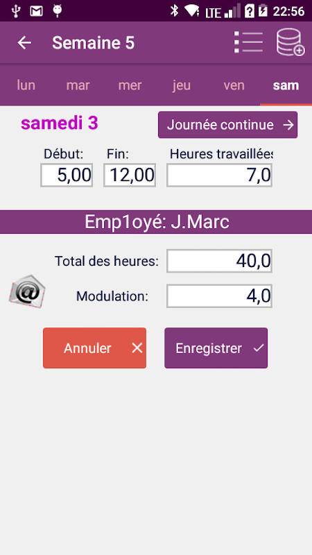 Cette version smartphone gère les modulations et le total des heures travaillées dans l'année.