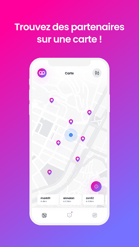 Con PlanplanQQ entri a far parte di una vera comunità di libertini per incontri istantanei. Nella tua città o in viaggio, donne e uomini, come te, desiderosi di conoscersi attraverso i filtri di ricerca, appaiono intorno a te e l'applicazione ti materializza mentre rimane aperta. Grazie alla messaggistica limitata, hai la possibilità di scambiare qualche parola per ritrovarti proprio, fissando un segnale fisico (davanti all'ingresso del locale, grazie al mio cappello rosso, sigaretta nella mano sinistra, ecc.) . Se il fascino agisce reciprocamente, i momenti che seguono ti appartengono. Se uno dei protagonisti non vuole proseguire oltre, allora arrivederci e PlanplanQQ ti permetterà di passare ad un altro profilo...