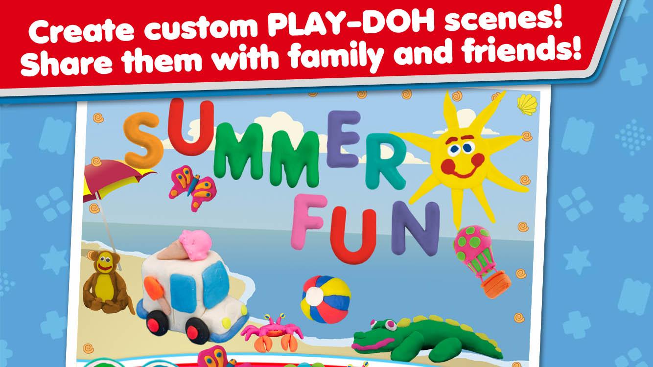 Costruisci le tue scene PLAY-DOH con le tue creazioni PLAY-DOH. La galleria PLAY-DOH è a portata di clic sul pulsante "crea e condividi". Lì puoi goderti tutti gli oggetti animati e colorati che crei mentre ti fai strada tra le lettere dell'alfabeto. Seleziona il tuo sfondo preferito e dai vita alle scene PLAY-DOH con le immagini PLAY-DOH personalizzate. Salva le tue creazioni sul tuo smartphone o touchscreen e condividile con gli altri!