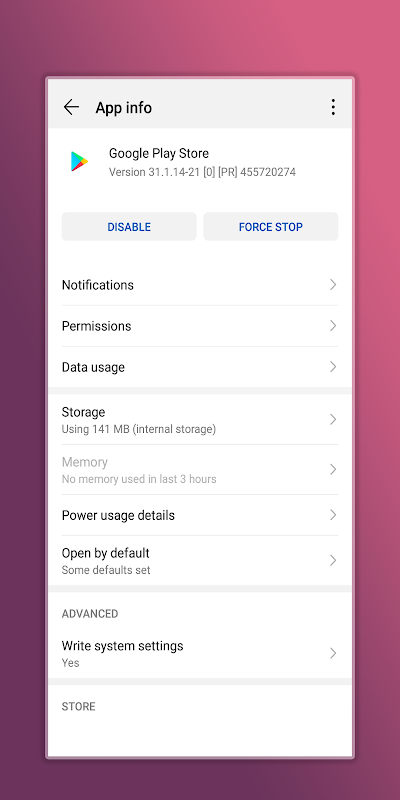 2.Aggiorna l'app Play Store alla versione originale.