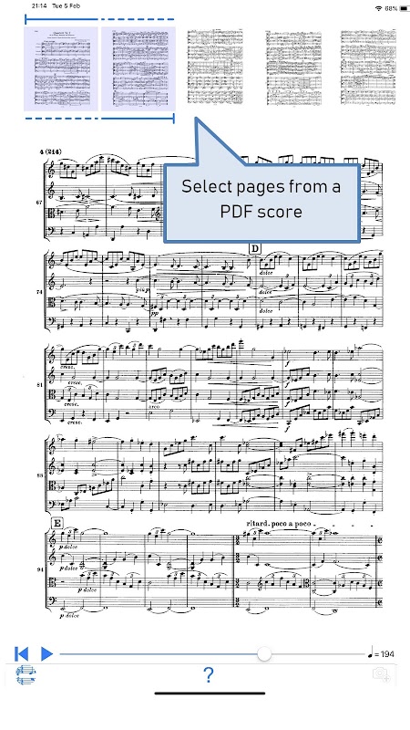 PlayScore è gratuito per riprodurre pagine di musica dalla fotocamera senza pubblicità. Abbonamenti disponibili per spartiti PDF e MusicXML.