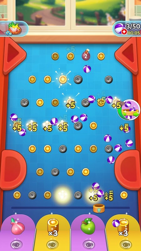 - Fai atterrare la pallina in diverse fessure in basso per vincere varie verdure e ricompense alimentari.