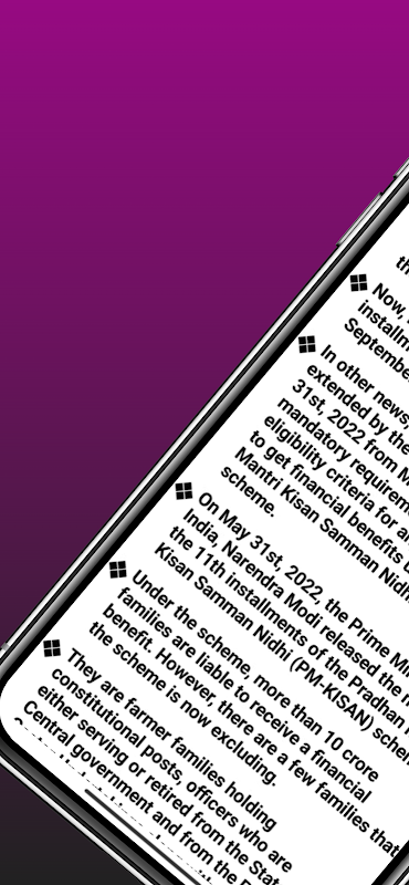 This app provides information about the PM KISAN SAMMAN NIDHI scheme implemented in India.