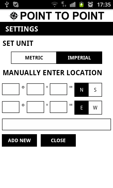 Tenere il dispositivo parallelo al suolo come se fosse una bussola in modalità di navigazione. Assicurati GPS del telefono è acceso! GPS non funziona bene negli edifici al suo interno. PointToPoint è meglio utilizzato all'aperto!