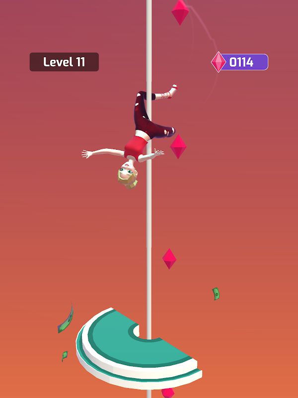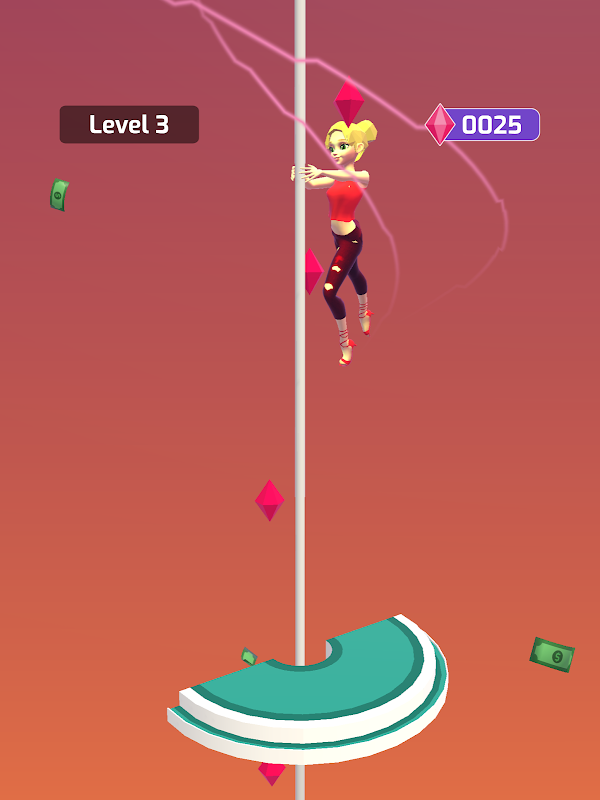 Rotate the pole to avoid the obstacles and collect as many gems as possible while dancing your way down the pole.