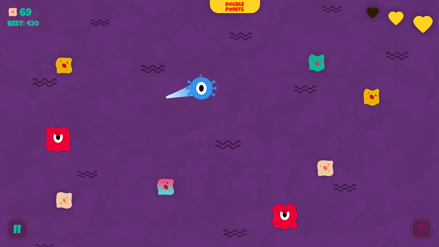 - AGGIORNAMENTO: raccogli punti DNA, usa potenziamenti per aumentare i tuoi punti, come IMMUNIUM o FROZIUM, raccogli celle speciali per ottenere RADDOPPIA PUNTI o RALLENTAMENTO nemico arrabbiato